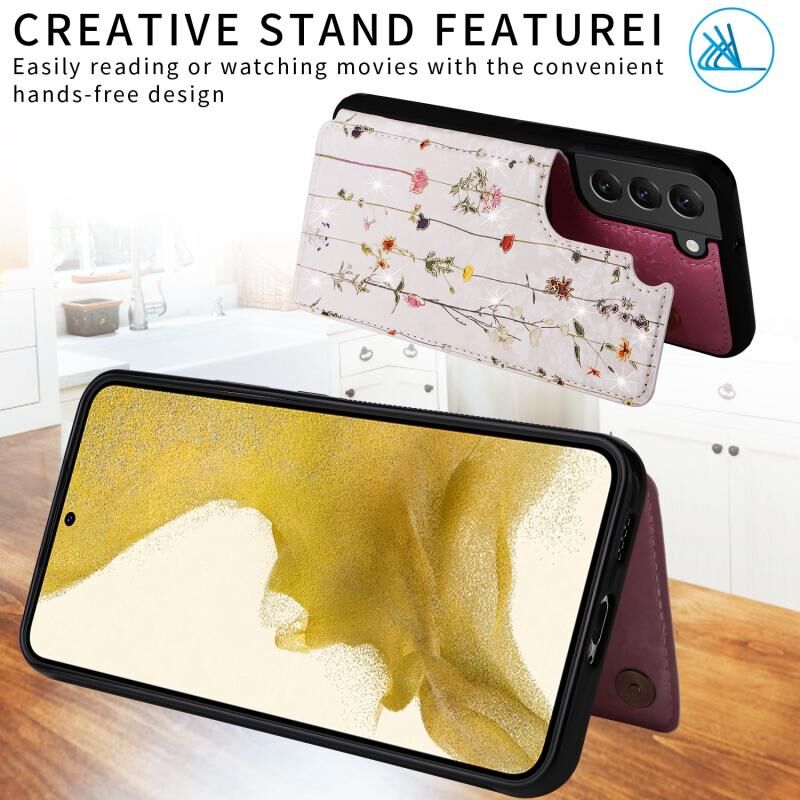 Θήκη τηλεφώνου με εκτύπωση για Samsung Galaxy S22+ 5G, διπλή αγκράφα, αντι-κλοπής RFID (Στεγνό Ανθώδες Κόσμος)