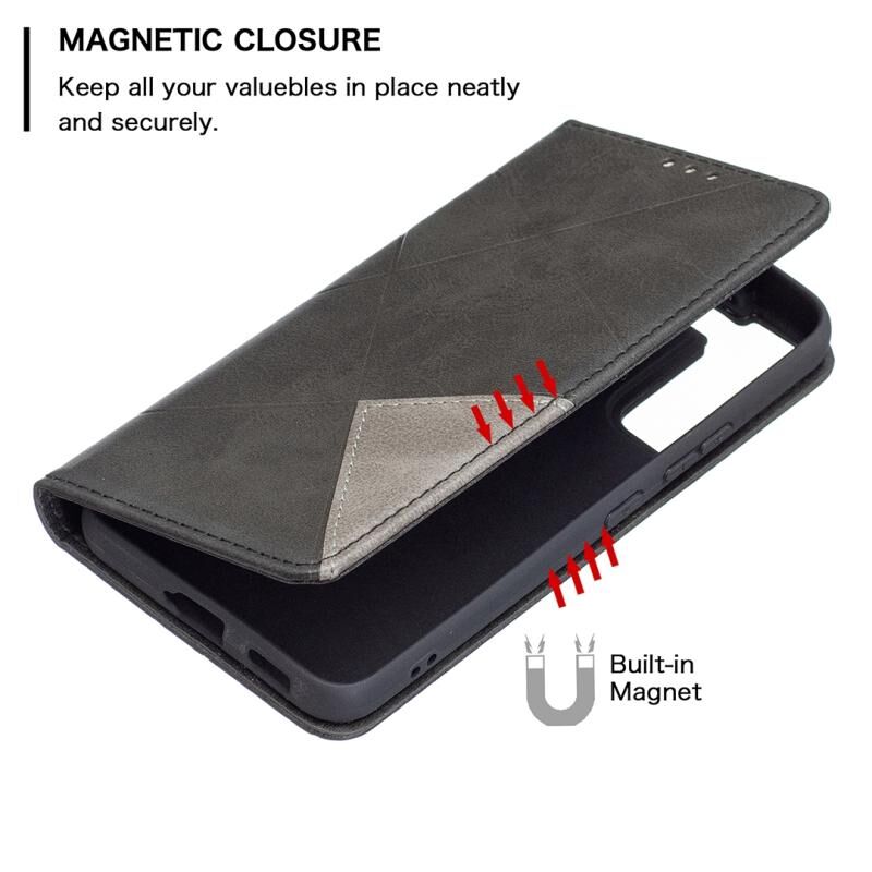 Για Samsung Galaxy S22 5G Prismatic Invisible μαγνητική οριζόντια Flip τηλέφωνο δερμάτινη θήκη με θήκη & υποδοχές για κάρτες & πλαίσιο φωτογραφιών (μαύρο)