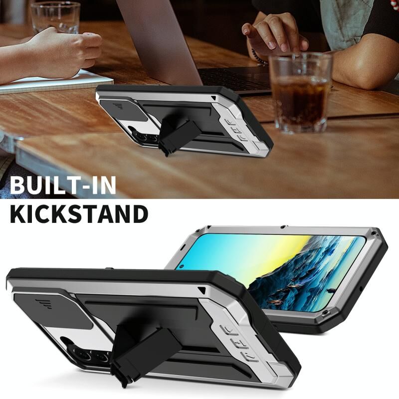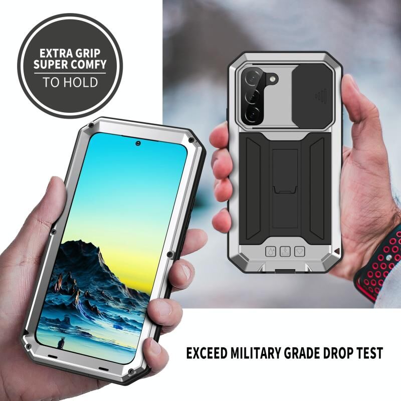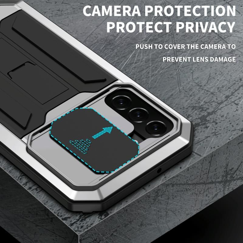 Θήκη κινητού τηλεφώνου Samsung Galaxy S22 5G R-JUST με μεταλλικό και σιλικόνη, με συρόμενη κάμερα (Ασημί) (R-JUST)