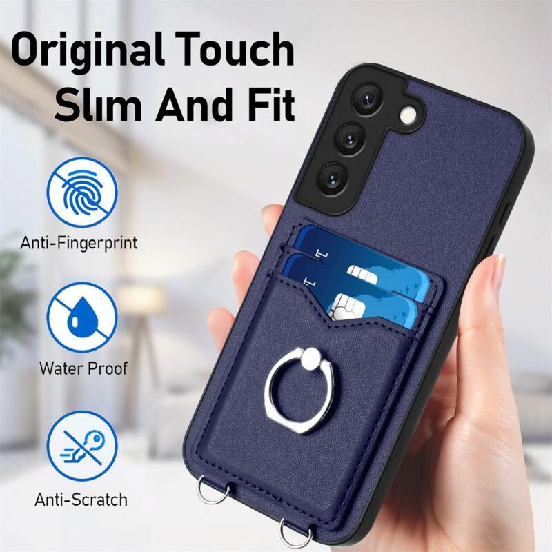 Για Samsung Galaxy S22+ 5G R20 Σταυρός σώμα σχοινί δαχτυλίδι κάτοχος κάρτας υπόθεση τηλεφώνου (μπλε)