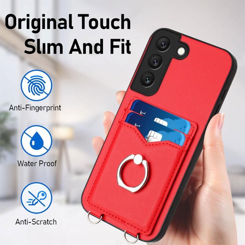 Για Samsung Galaxy S22+ 5G R20 Σταυρός σώμα σχοινί δαχτυλίδι κάτοχος κάρτας υπόθεση τηλεφώνου (κόκκινο)