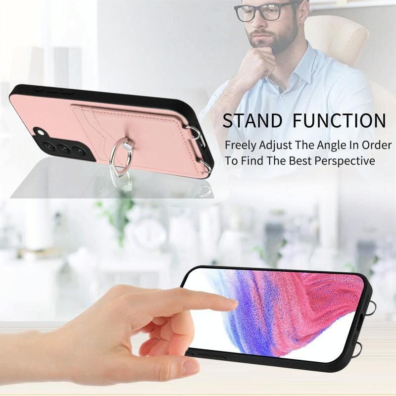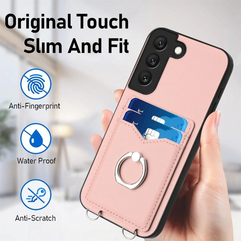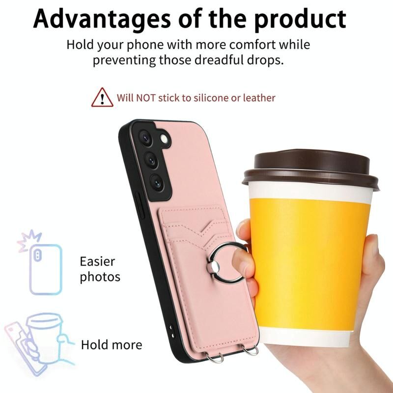 Για Samsung Galaxy S22+ 5G R20 Δαχτυλίδι κάτοχος κάρτας θήκη τηλεφώνου (ροζ)