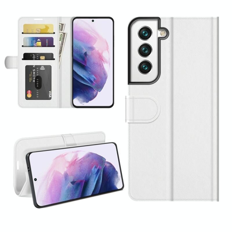 Για Samsung Galaxy S22+ 5G R64 Υφή ενιαία οριζόντια Flip προστατευτική θήκη με θήκη & υποδοχές για κάρτες & πορτοφόλι & πλαίσιο φωτογραφιών (λευκό)