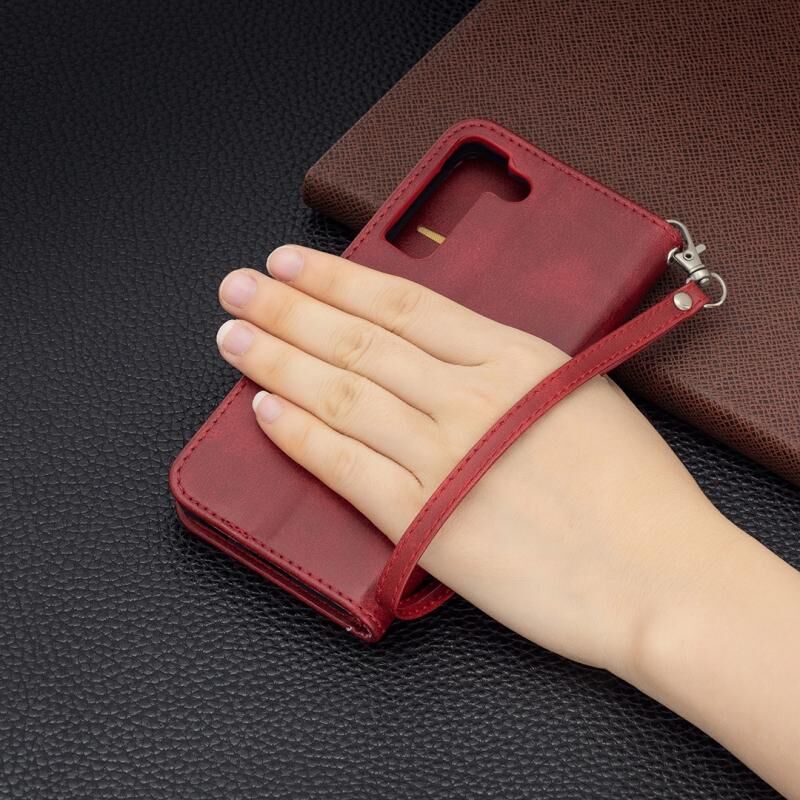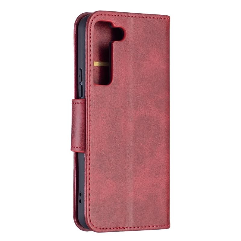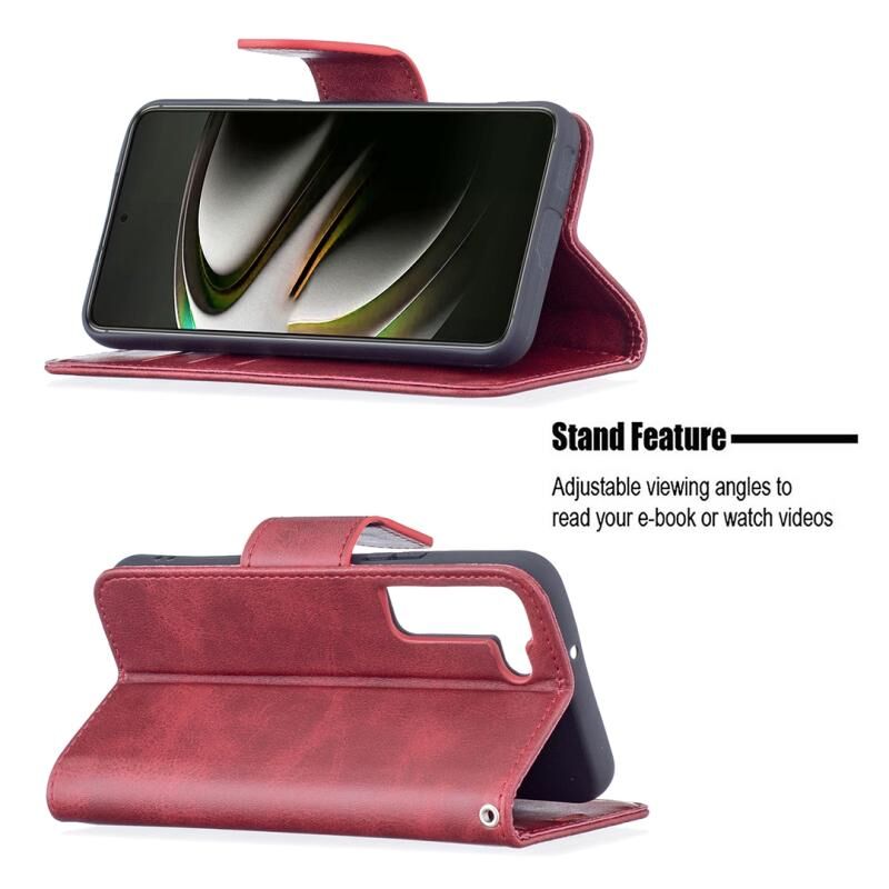 Για Samsung Galaxy S22 5G Retro Lambskin υφή καθαρό χρώμα οριζόντια Flip δερμάτινη θήκη τηλεφώνου με θήκη & υποδοχές για κάρτες & πορτοφόλι & κορδόνι (κόκκινο)
