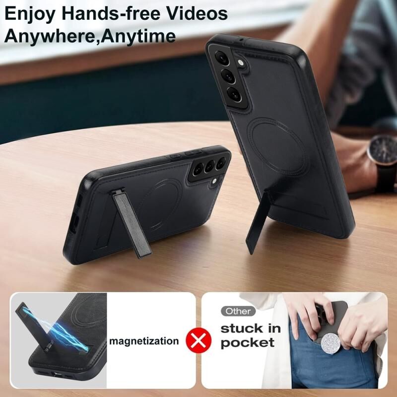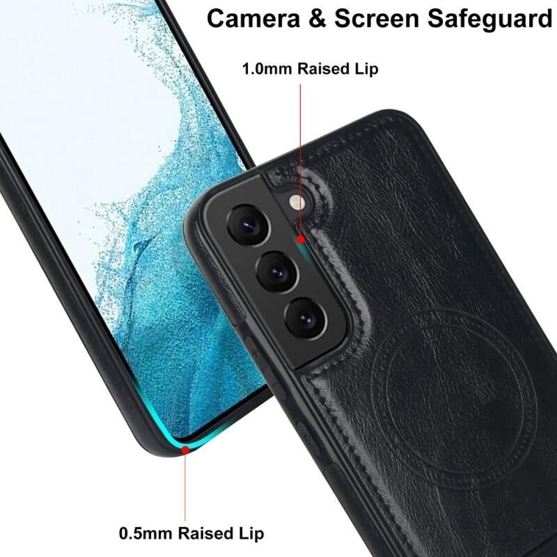 Θήκη κινητού Samsung Galaxy S22 5G από δέρμα σε ρετρό στυλ με αόρατο στήριγμα και MagSafe (Λευκό)