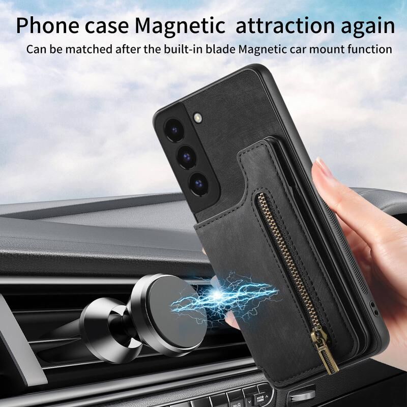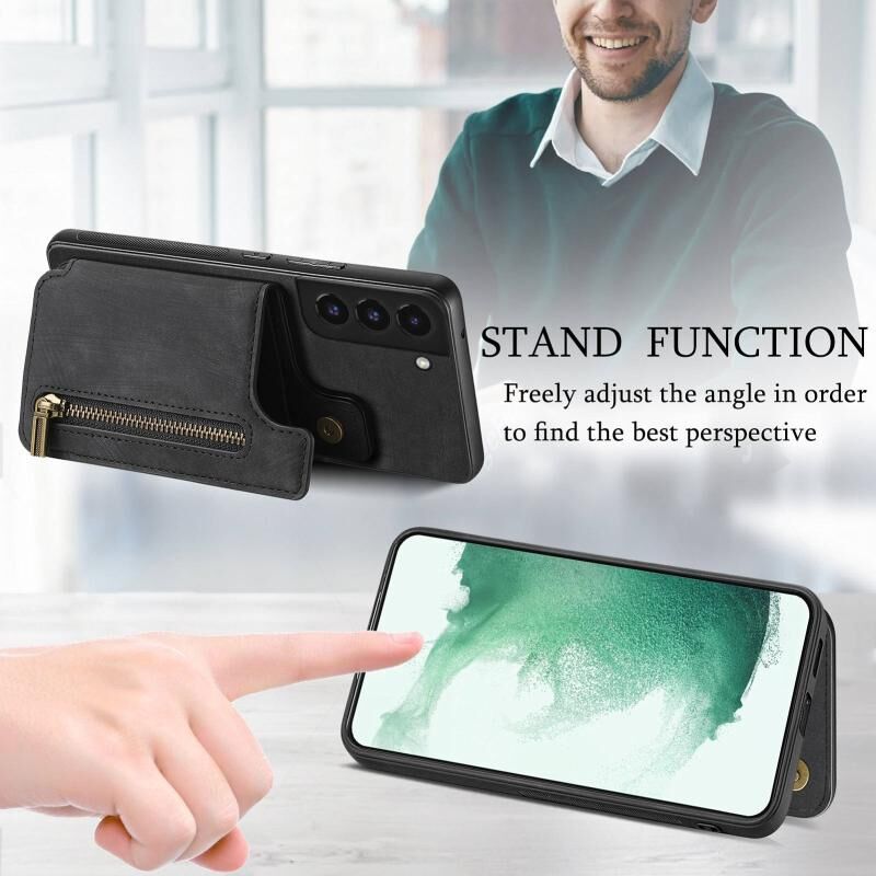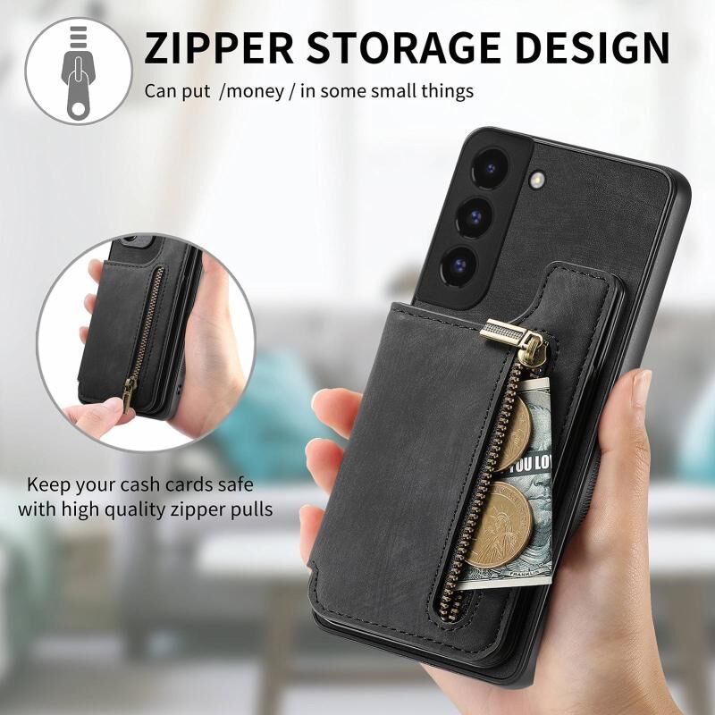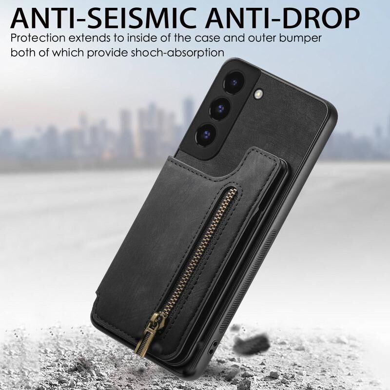 Για Samsung Galaxy S22 + 5G Retro δέρμα φερμουάρ πορτοφόλι πίσω θήκη τηλεφώνου (μαύρο)