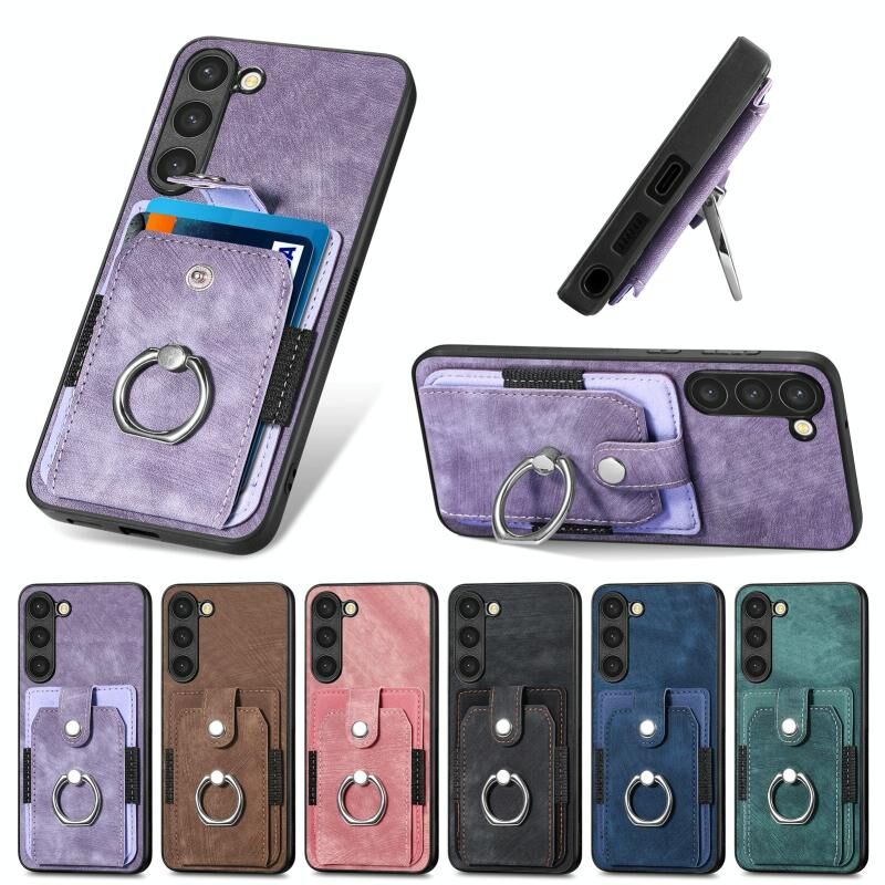 For Samsung Galaxy S22+ 5G Retro Skin-feel Ring Card Wallet Phone Case(Green)