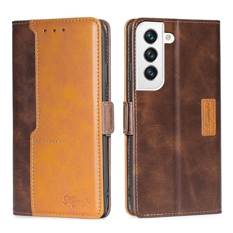 Για Samsung Galaxy S22 5G Retro υφή αντίθεση χρώμα πλευρά πόρπη οριζόντια Flip δερμάτινη θήκη με κάτοχο & υποδοχές για κάρτες & πορτοφόλι (καφέ)