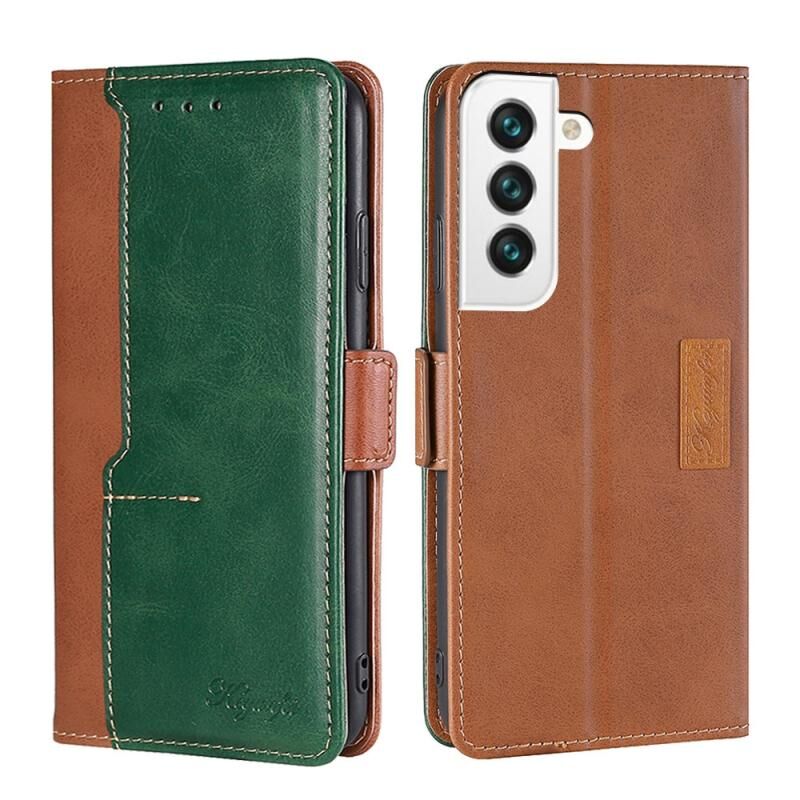 Για Samsung Galaxy S22+ 5G Retro υφή αντίθεση χρώμα πλευρά πόρπη οριζόντια Flip δερμάτινη θήκη με θήκη & υποδοχές για κάρτες & πορτοφόλι (ανοιχτό καφέ + πράσινο)