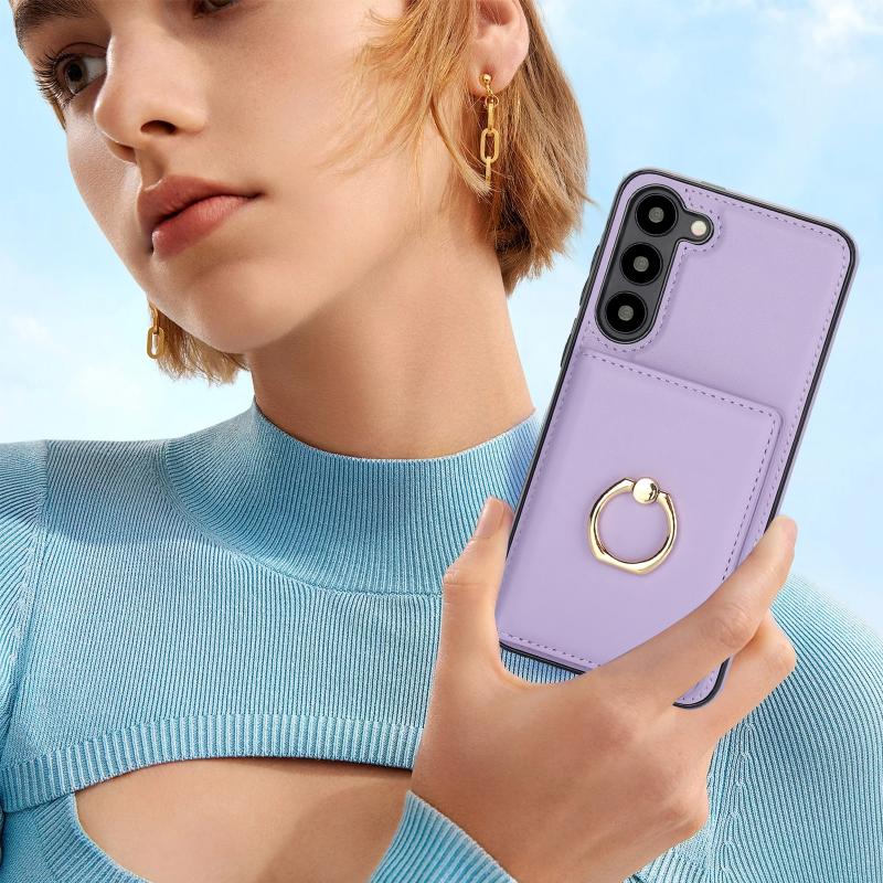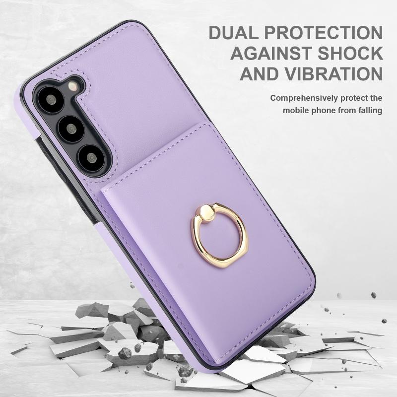 For Samsung Galaxy S22+ 5G RFID Anti-theft Card Ring Holder Phone Case(Purple)