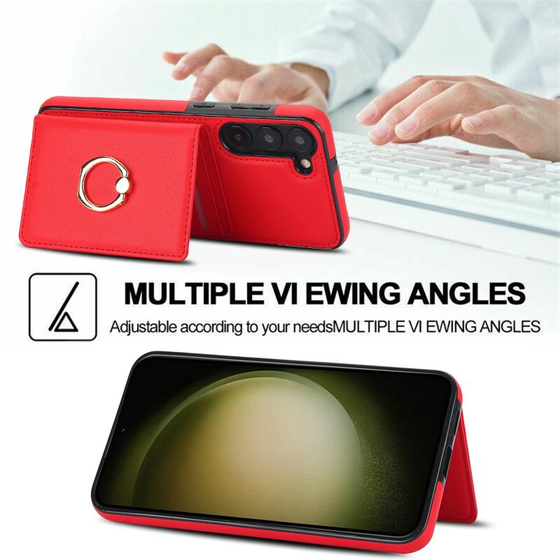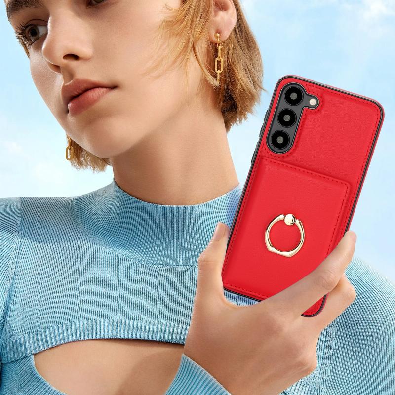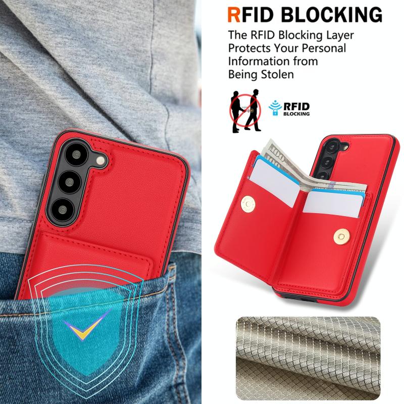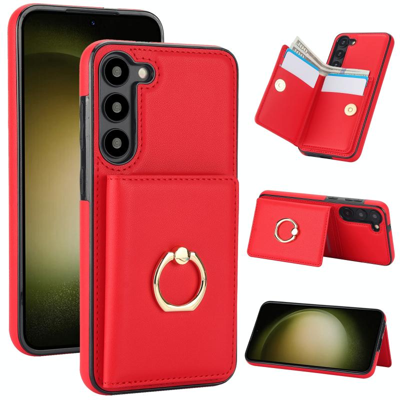 For Samsung Galaxy S22 5G RFID Anti-theft Card Ring Holder Phone Case(Red)