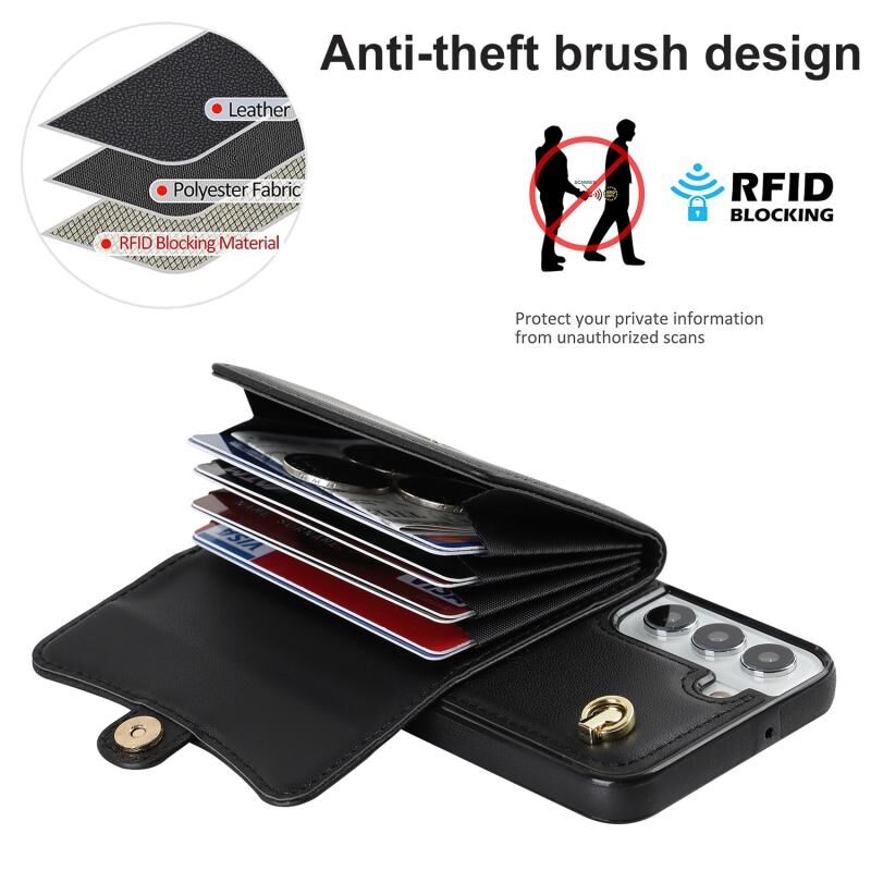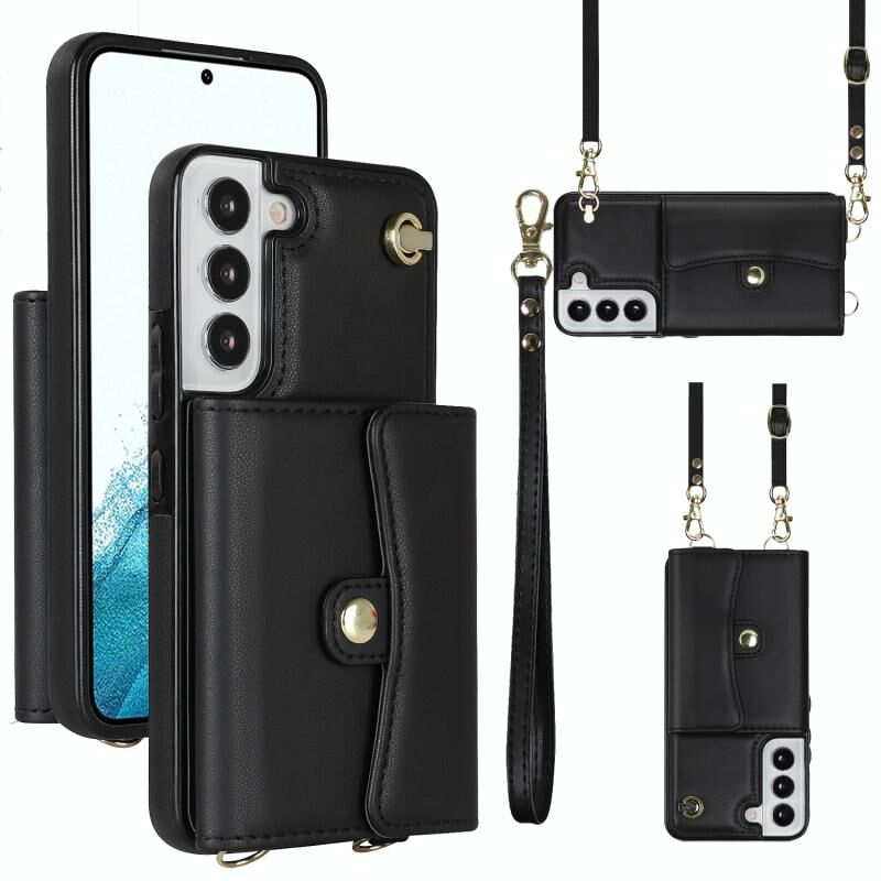 Για Samsung Galaxy S22 5G RFID Slot κάρτα δερμάτινη θήκη τηλεφώνου με μακρύ κορδόνι (Μαύρο)