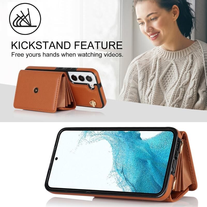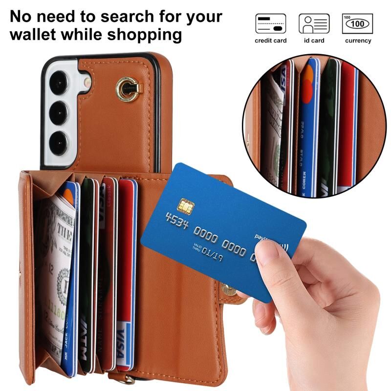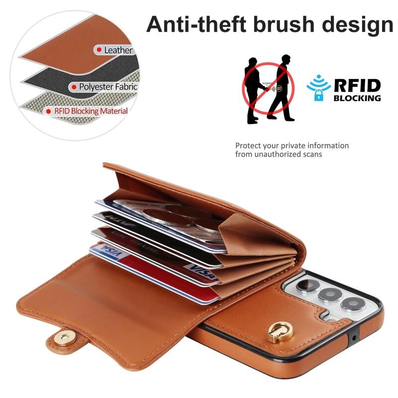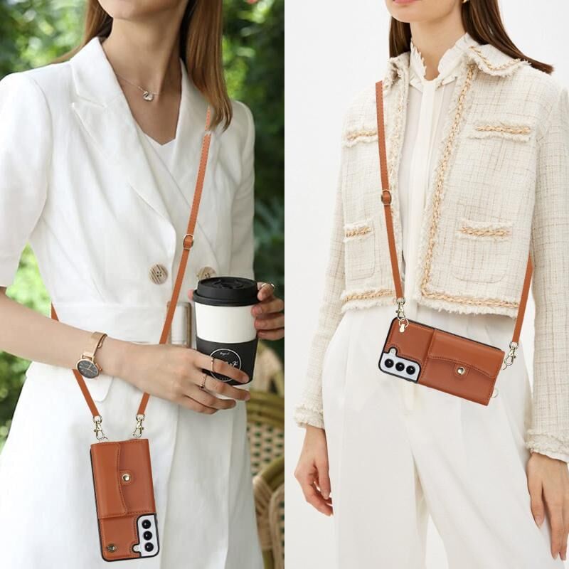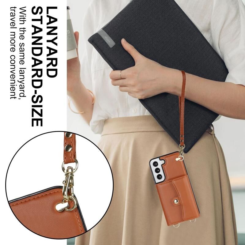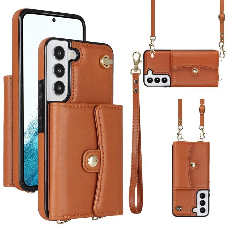 Για Samsung Galaxy S22+ 5G RFID Slot κάρτα δερμάτινη θήκη τηλεφώνου με μακρύ κορδόνι (καφέ)