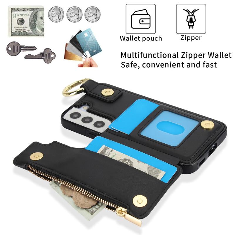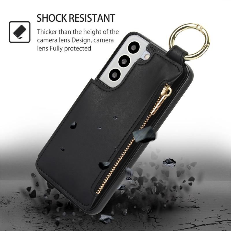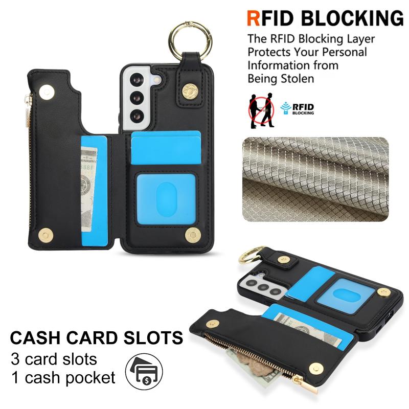 For Samsung Galaxy S22+ 5G RFlD Anti-theft Double Buckle Ring Zipper Card Phone Case(Black)
