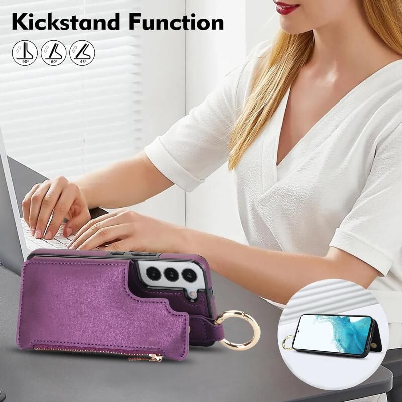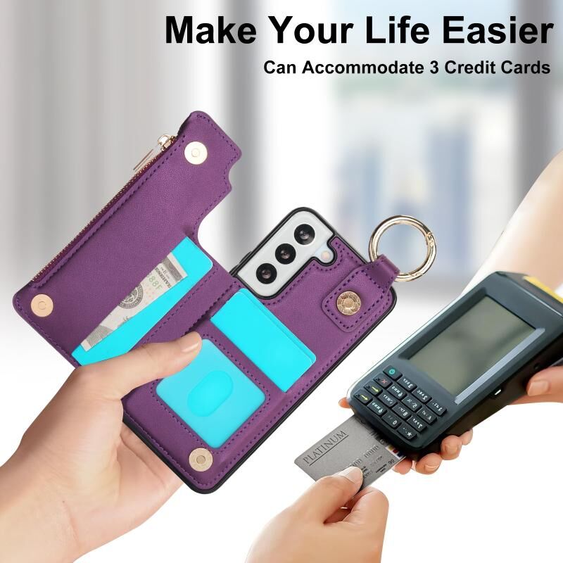 Για Samsung Galaxy S22 5G RFlD 5G Anti-theft Διπλό πόρπη δαχτυλίδι φερμουάρ τηλέφωνο υπόθεση κάρτα (σκούρο μωβ)