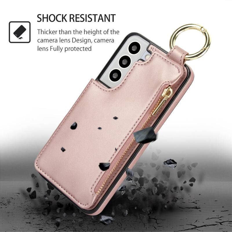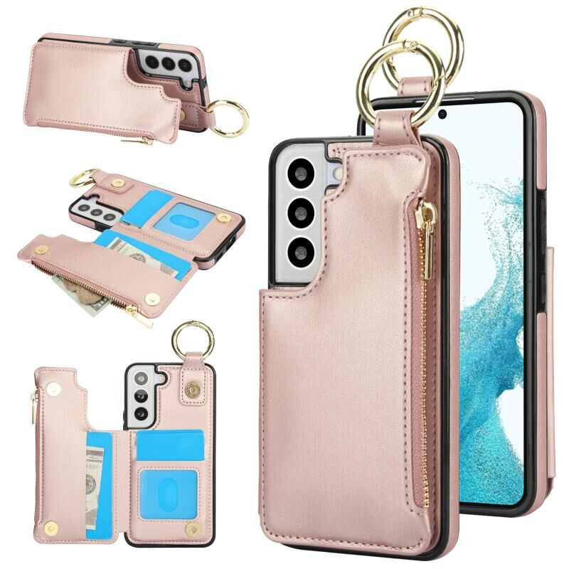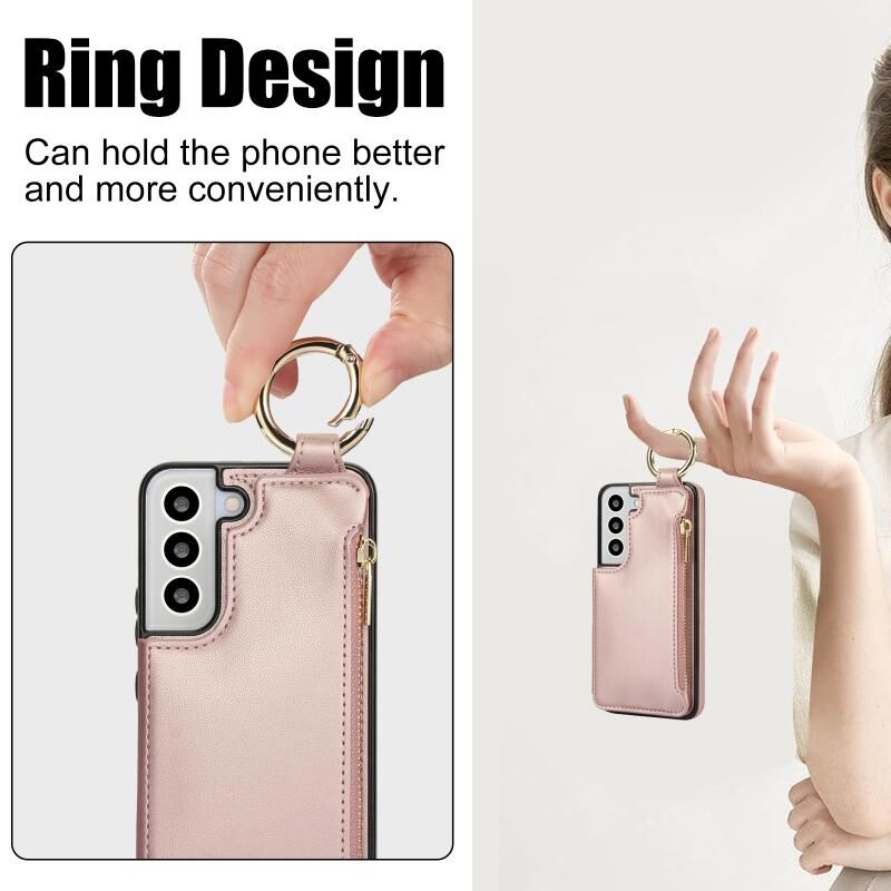 Για Samsung Galaxy S22 5G RFlD 5G αντικλεπτική διπλή πόρπη δαχτυλίδι φερμουάρ τηλέφωνο υπόθεση κάρτα (Rose Gold)