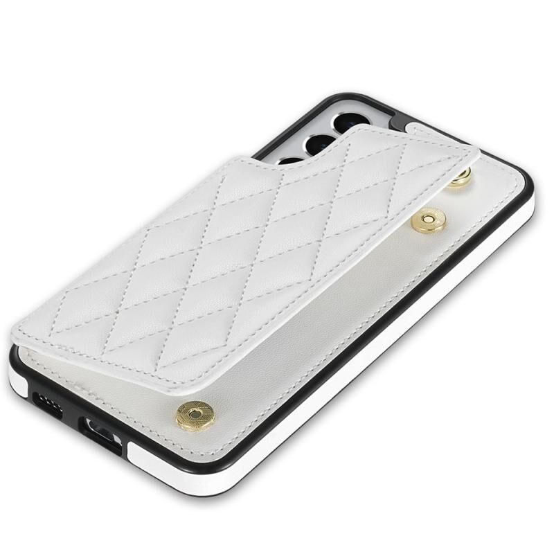 Για Samsung Galaxy S22 5G Rhombic Dual Buckle υποδοχές κάρτας τηλέφωνο υπόθεση με κορδόνι (λευκό)