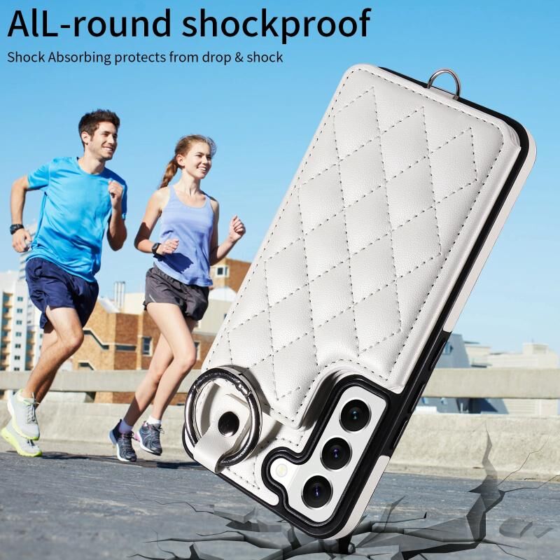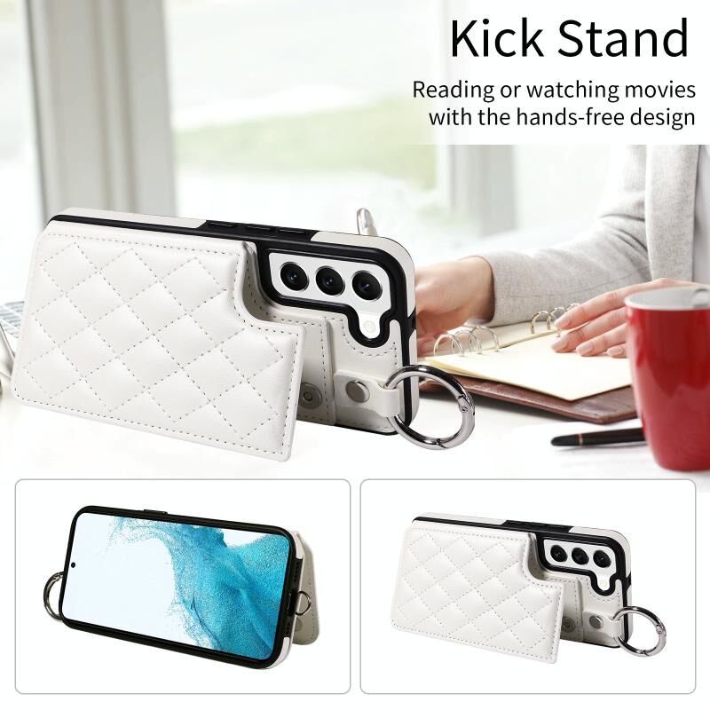 Για Samsung Galaxy S22 5G Rhombic υφή κάρτα τσάντα θήκη τηλεφώνου με σύντομο κορδόνι (λευκό)