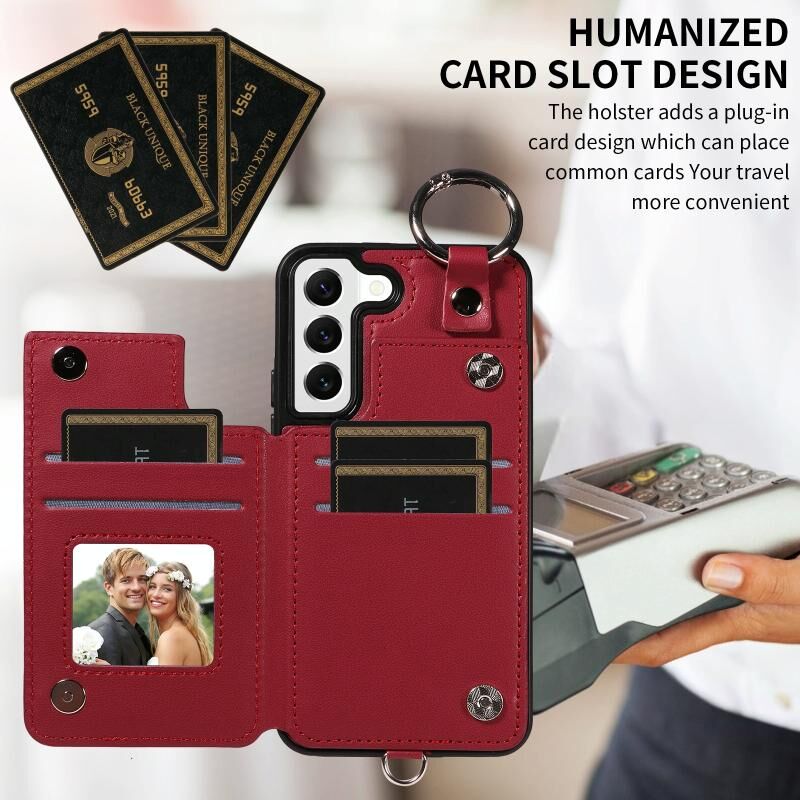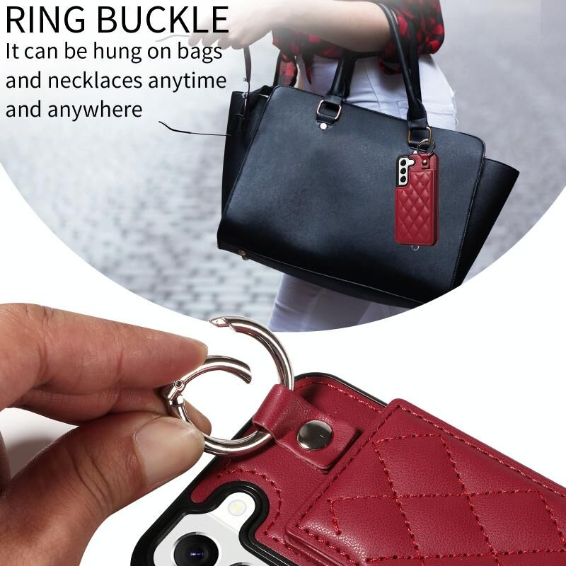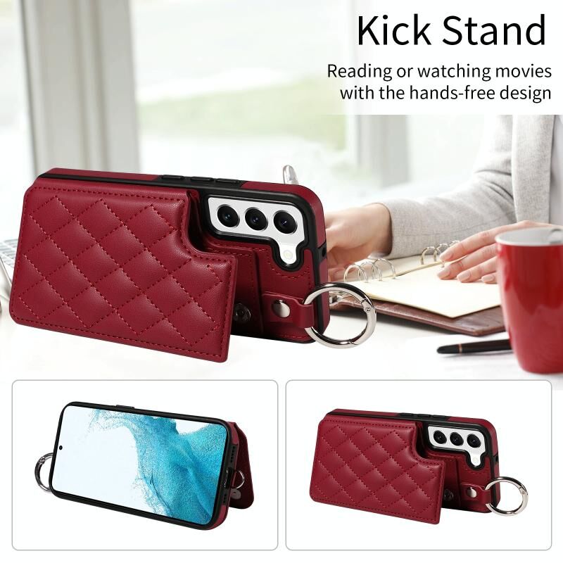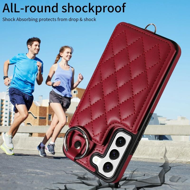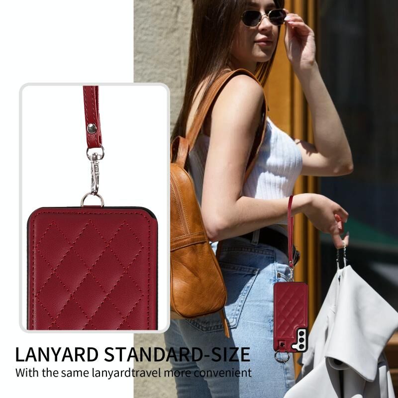 Για Samsung Galaxy S22 5G Rhombic υφή κάρτα τσάντα θήκη τηλεφώνου με κοντό κορδόνι (κόκκινο κρασί)