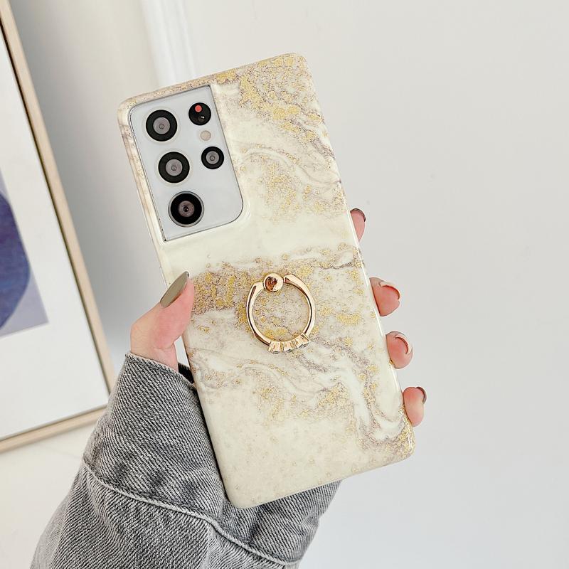 Θήκη κινητού τηλεφώνου με δακτύλιο και γκλίτερ από μάρμαρο για Samsung Galaxy S22 5G (Γκρι Πλατίνα)