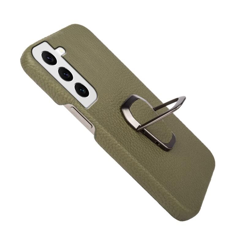 Θήκη κινητού τηλεφώνου Samsung Galaxy S22 5G με δακτύλιο και γνήσιο δέρμα υφής λύτσι (Μαύρο)