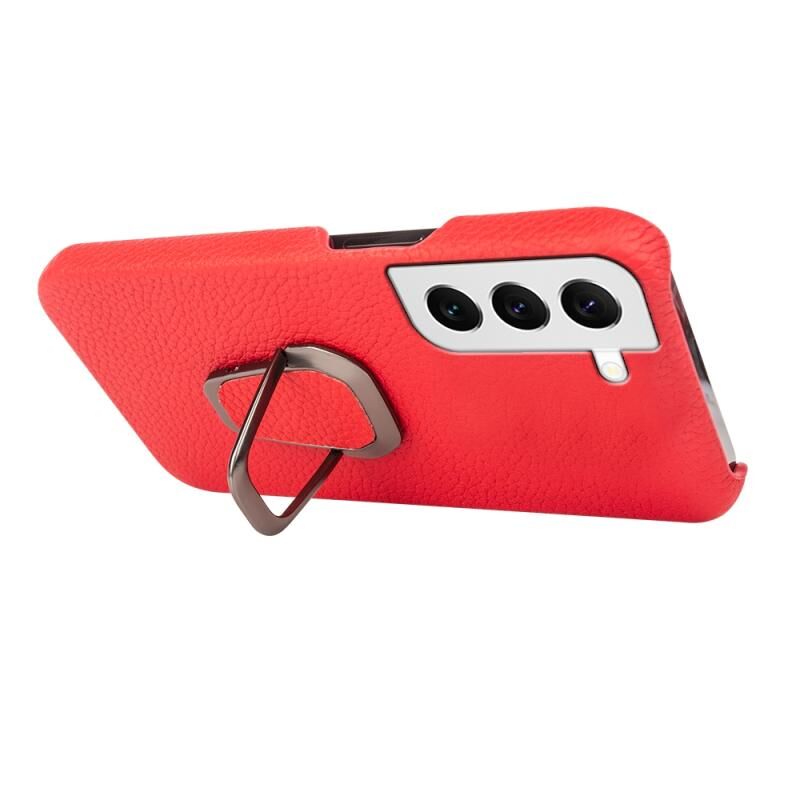 Θήκη κινητού τηλεφώνου Samsung Galaxy S22 5G με δακτύλιο και γνήσιο δέρμα υφής λύτσι (Μαύρο)