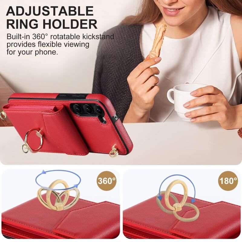 Για Samsung Galaxy S22 + 5G Δαχτυλίδι κάτοχος RFID κάρτα Slot υπόθεση τηλεφώνου με μακρύ κορδόνι (κόκκινο)