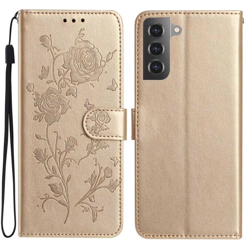 For Samsung Galaxy S22 5G Rose Flower Embossing Pattern Leather Phone Case(Gold)