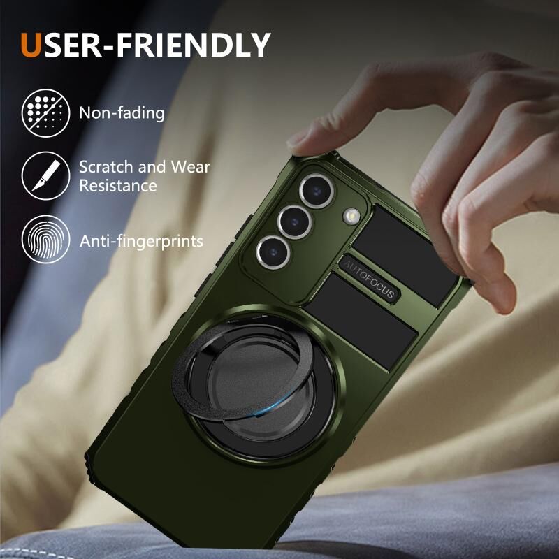 Για Samsung Galaxy S22 5G Περιστρεφόμενη μαγνητική θήκη τηλεφώνου (σκούρο πράσινο)