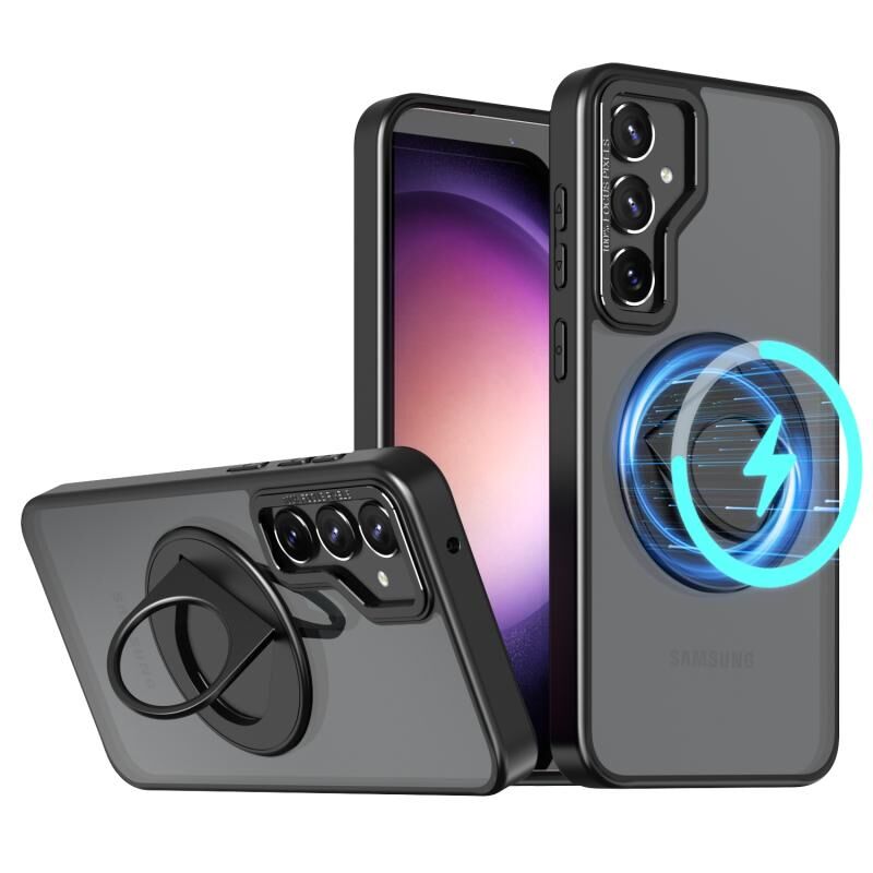Θήκη τηλεφώνου με περιστρεφόμενο δακτύλιο και μαγνητική βάση για Samsung Galaxy S22 5G (Μαύρο)