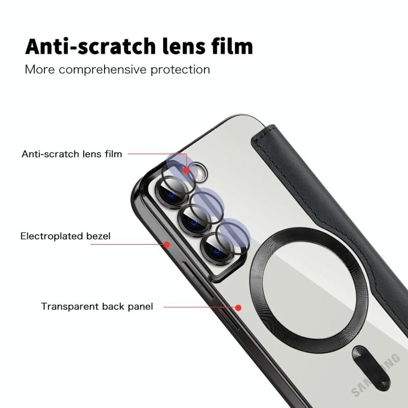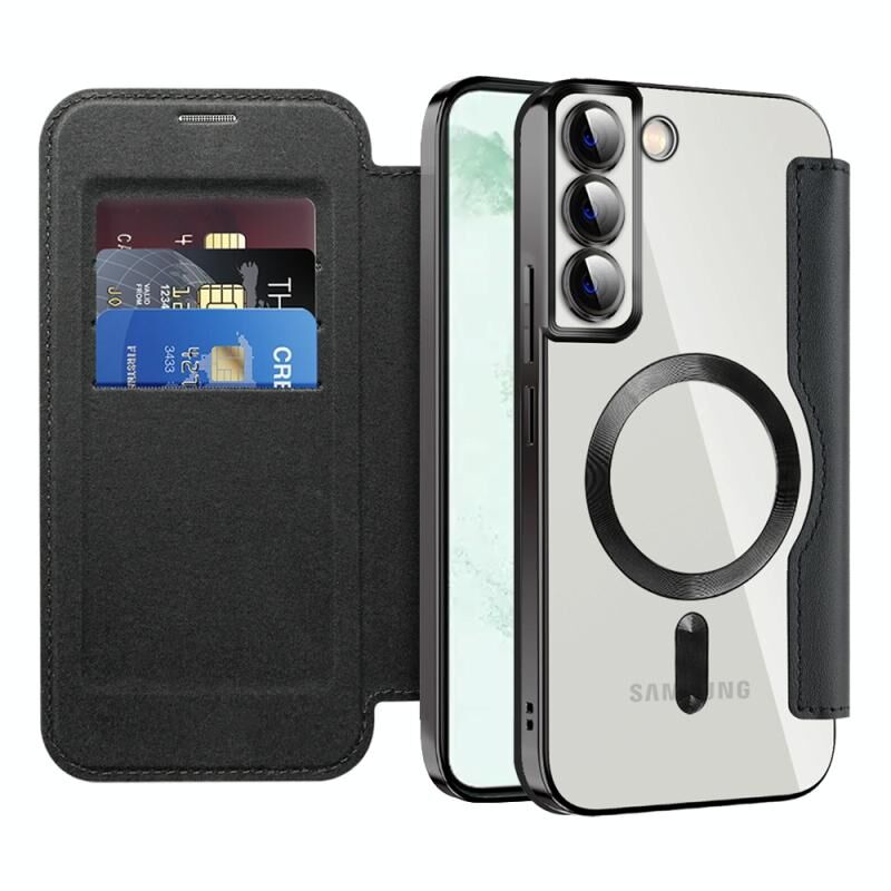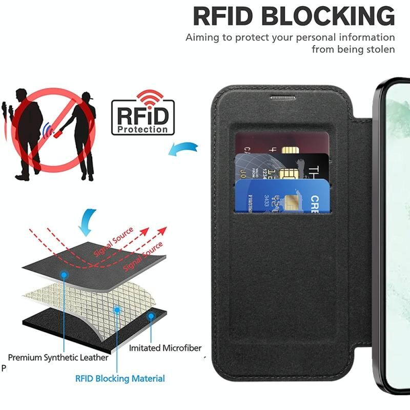 Θήκη τηλεφώνου δερμάτινη με προστασία MagSafe, RFID και αντι-κλοπής για Samsung Galaxy S22+ 5G (Σκούρο Μπλε)