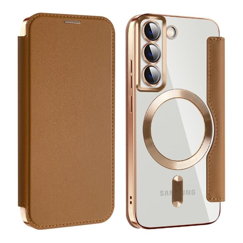 Θήκη τηλεφώνου δερμάτινη με μαγνητική υποστήριξη MagSafe, αντι-κλοπής RFID για Samsung Galaxy S22 5G (Μωβ)
