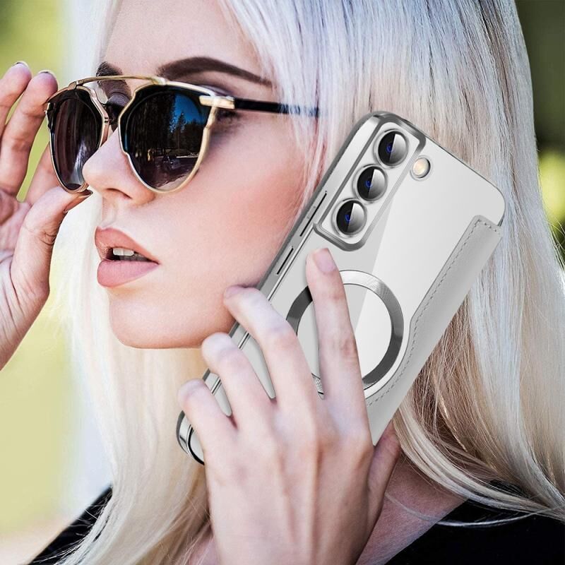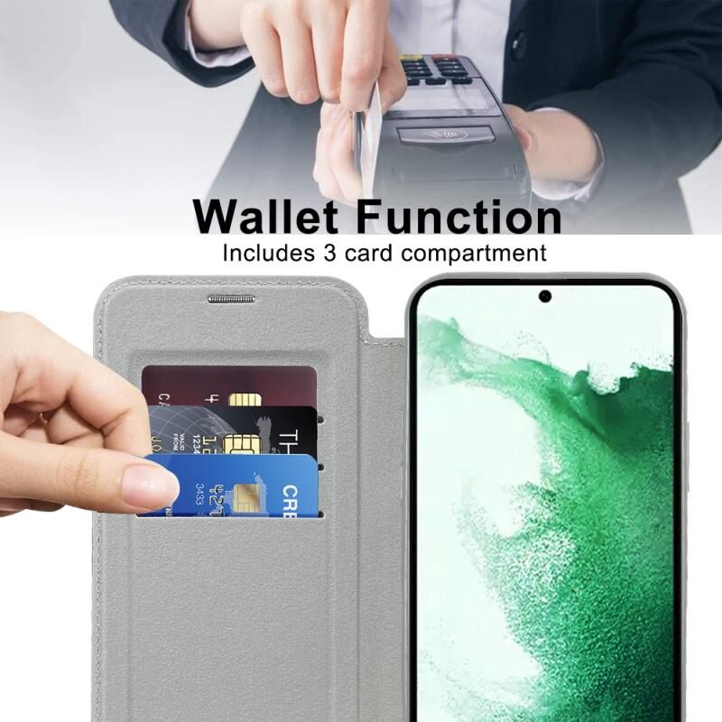 Θήκη τηλεφώνου δερμάτινη με προστασία MagSafe, RFID και αντι-κλοπής για Samsung Galaxy S22+ 5G (Γκρι)