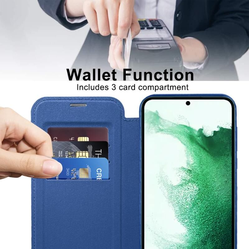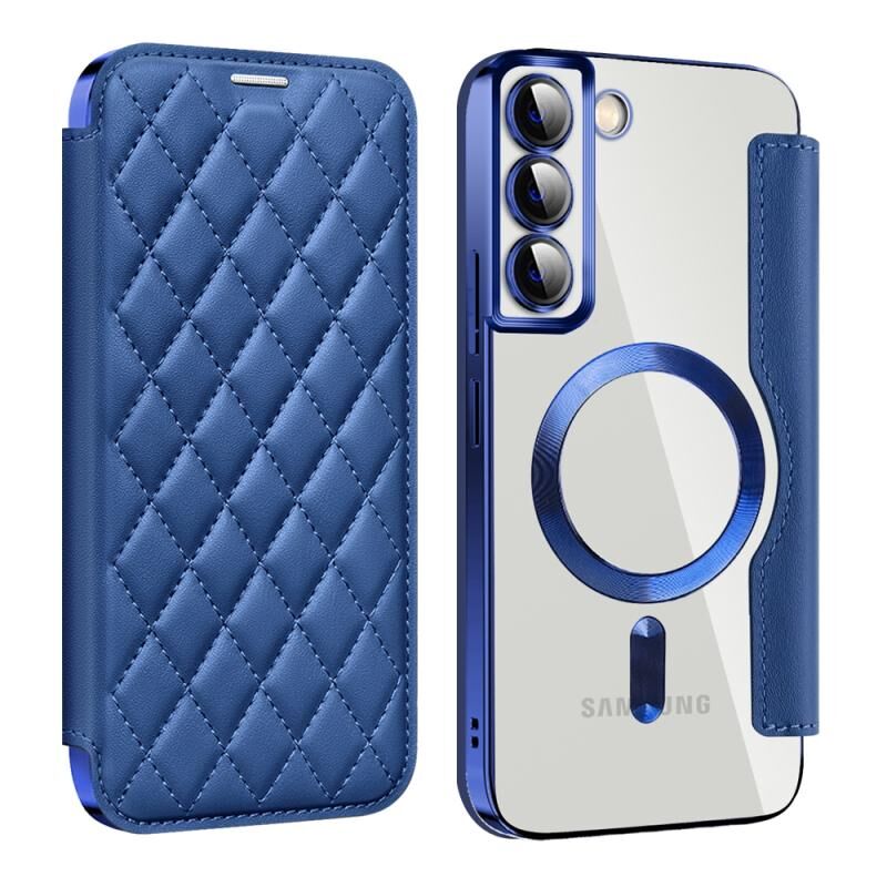 Θήκη τηλεφώνου Samsung Galaxy S22+ 5G Shield MagSafe RFID Anti-theft από δέρμα με ρόμβους (Σκούρο Μπλε)