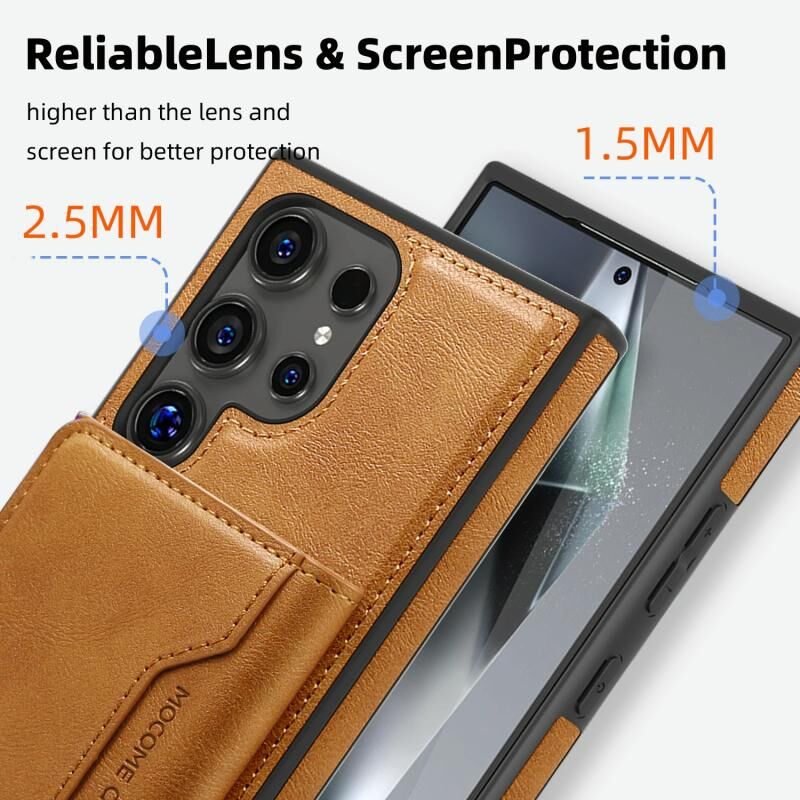 Θήκη κινητού τηλεφώνου Samsung Galaxy S22 5G Shield, πολυλειτουργική τσάντα κάρτας MagSafe (Καφέ)