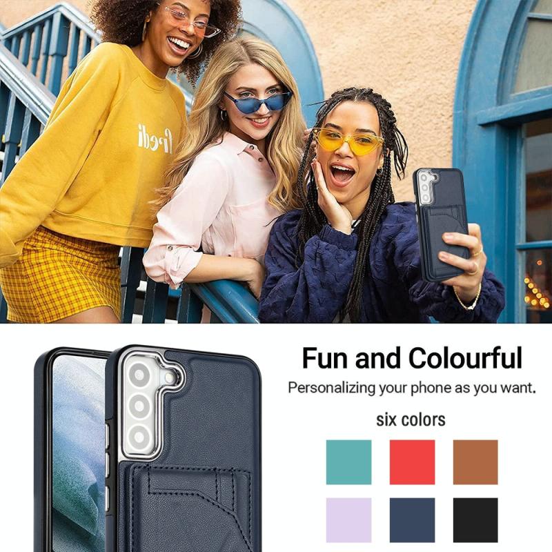 Θήκη κινητού Samsung Galaxy S22 5G από δέρμα, ανθεκτική στις κρούσεις, με θήκη για κάρτες (Κόκκινο)
