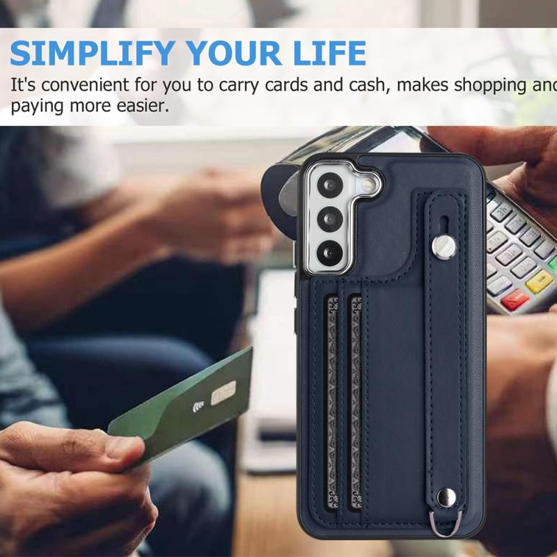 Θήκη κινητού Samsung Galaxy S22+ 5G από δέρμα με προστασία από κραδασμούς και λουρί καρπού (Μπλε)