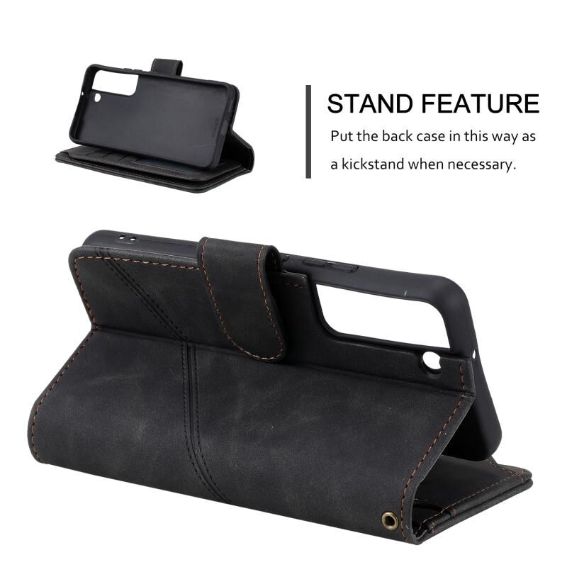 Για Samsung Galaxy S22 + 5G δέρμα αίσθηση κάρτα υποδοχή δερμάτινη θήκη τηλεφώνου (μαύρο)