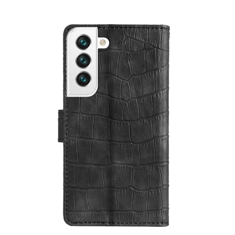 Θήκη τηλεφώνου Samsung Galaxy S22 5G από δέρμα με μαγνητικό κούμπωμα και υφή κροκόδειλου (Μαύρο)