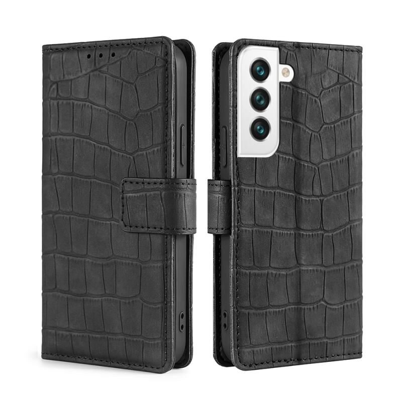 For Samsung Galaxy S22+ 5G Skin Feel Crocodile Texture Magnetic Clasp Horizontal Flip PU Case with Holder & Card Slots & Wallet(Black)