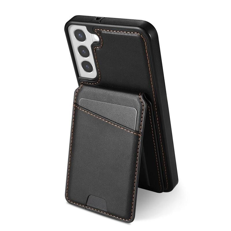 Θήκη κινητού Samsung Galaxy S22 5G με αποσπώμενη τσέπη κάρτας και MagSafe, αίσθηση δέρματος (Μαύρο)