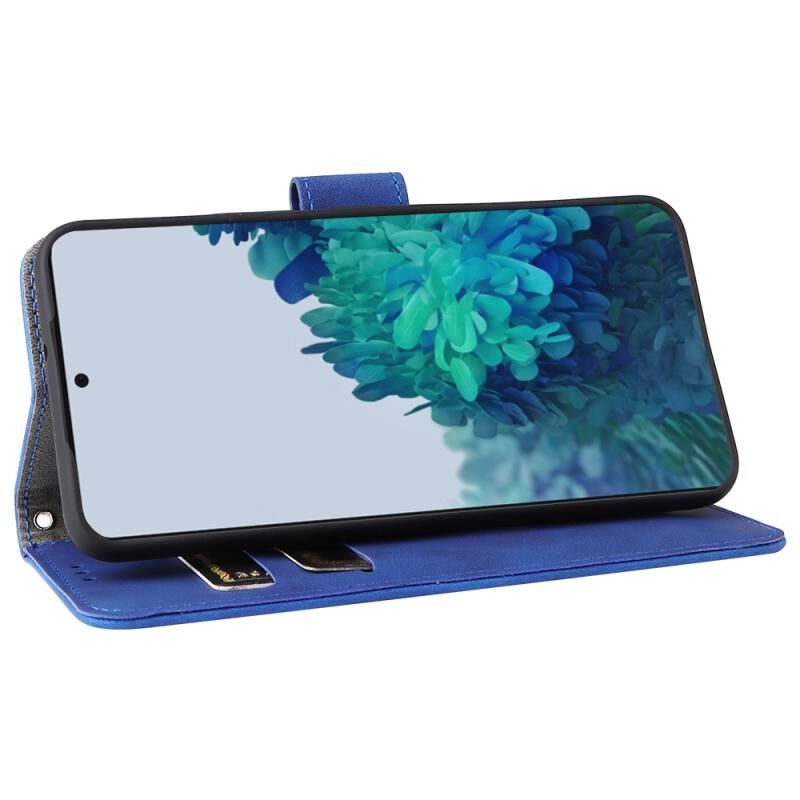 Για Samsung Galaxy S22 5G δέρμα αίσθηση μαγνητική πόρπη μοσχάρι υφή PU υπόθεση τηλεφώνου (μπλε)