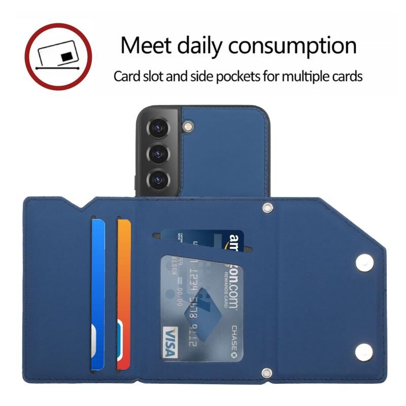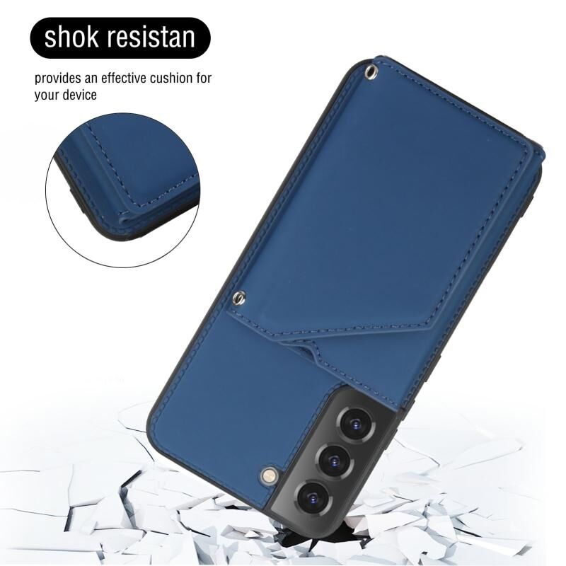 Για Samsung Galaxy S22 + 5G δέρμα αίσθηση PU + TPU + PC τηλέφωνο υπόθεση με υποδοχές για κάρτες (μπλε)