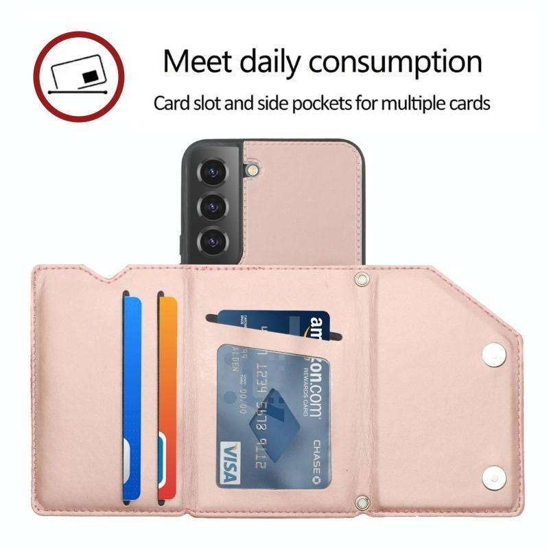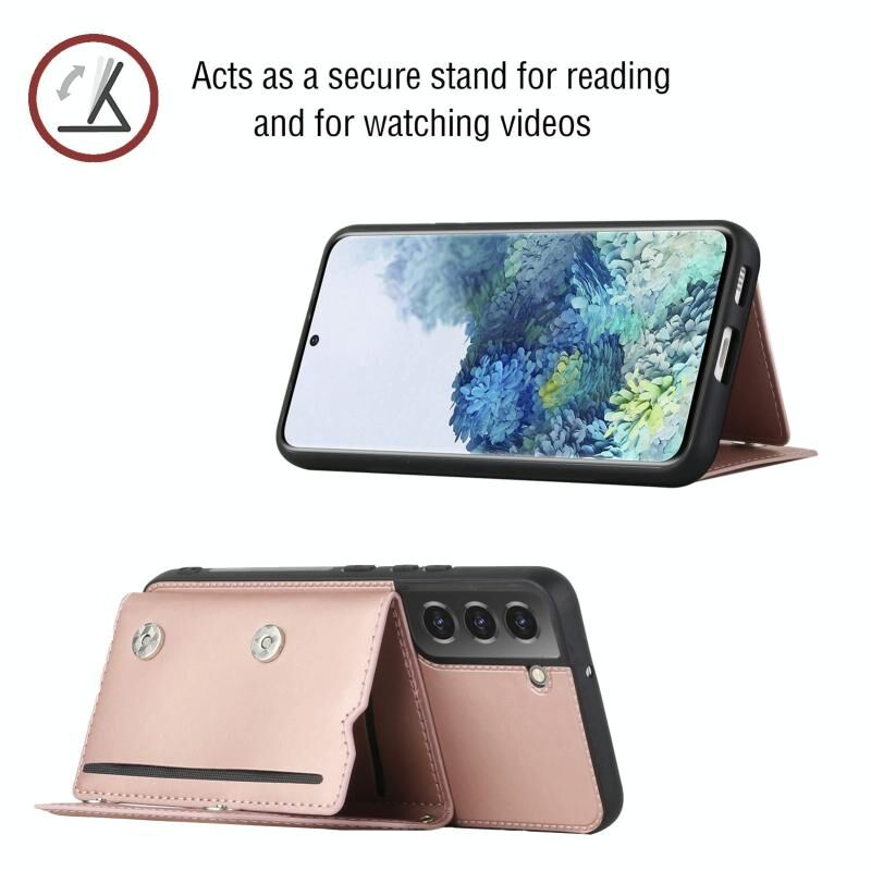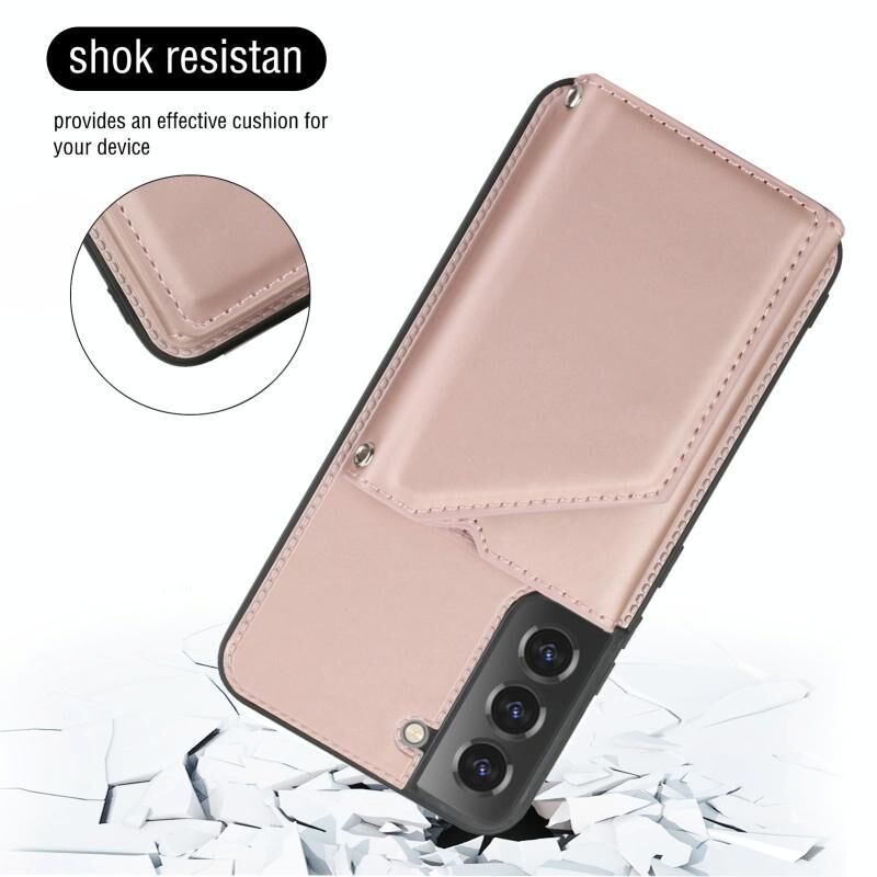 Για Samsung Galaxy S22 5G δέρμα αίσθηση PU + TPU + PC τηλέφωνο υπόθεση με υποδοχές για κάρτες (Rose Gold)