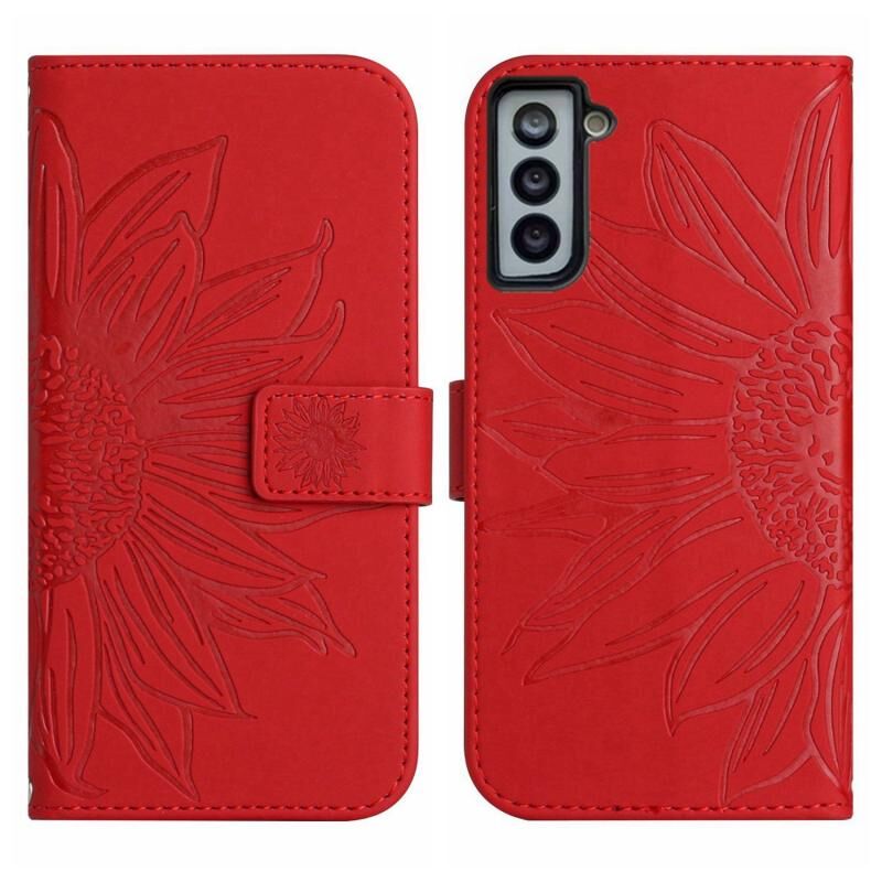Για το Samsung Galaxy S22 + 5G δέρμα αίσθηση Sun Flower μοτίβο Flip δέρμα τηλέφωνο υπόθεση με κορδόνι (κόκκινο)