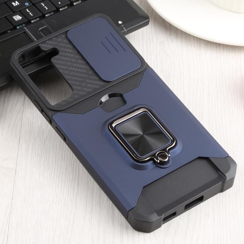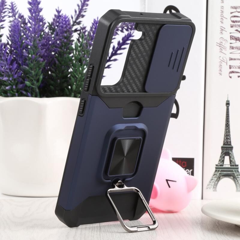 Για Samsung Galaxy S22 + 5G συρόμενη κάμερα κάλυμμα Σχεδιασμός PC + TPU Shockproof τηλέφωνο υπόθεση με θήκη δαχτυλίδι & υποδοχή κάρτας (μπλε)