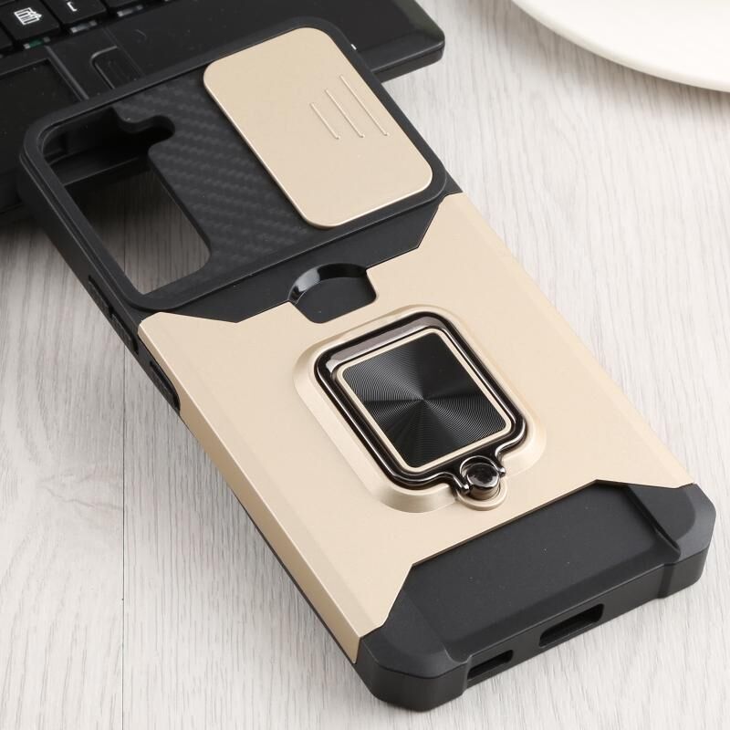 Για Samsung Galaxy S22 + 5G συρόμενη κάμερα κάλυμμα Σχεδιασμός PC + TPU Shockproof υπόθεση τηλεφώνου με θήκη δαχτυλίδι & υποδοχή κάρτας (χρυσό)