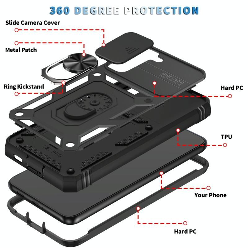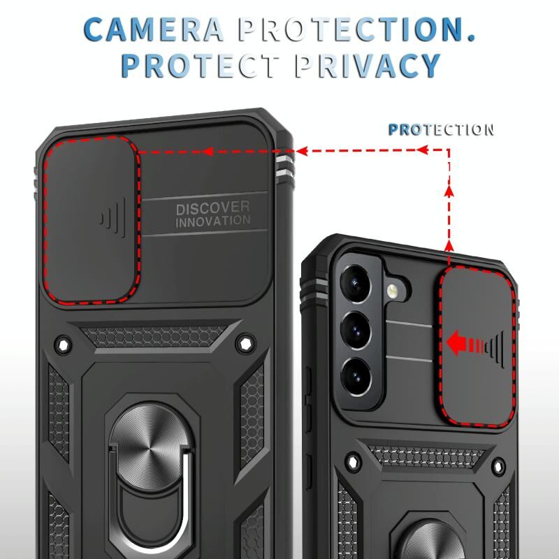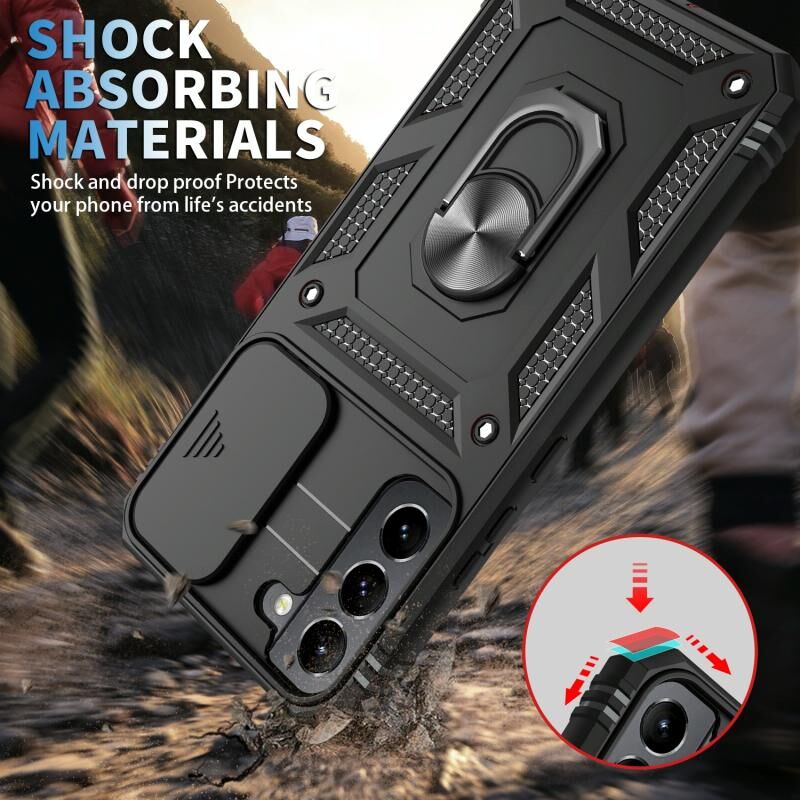 For Samsung Galaxy S22+ 5G Sliding Camera Cover TPU + PC Phone Case(Black+Black)