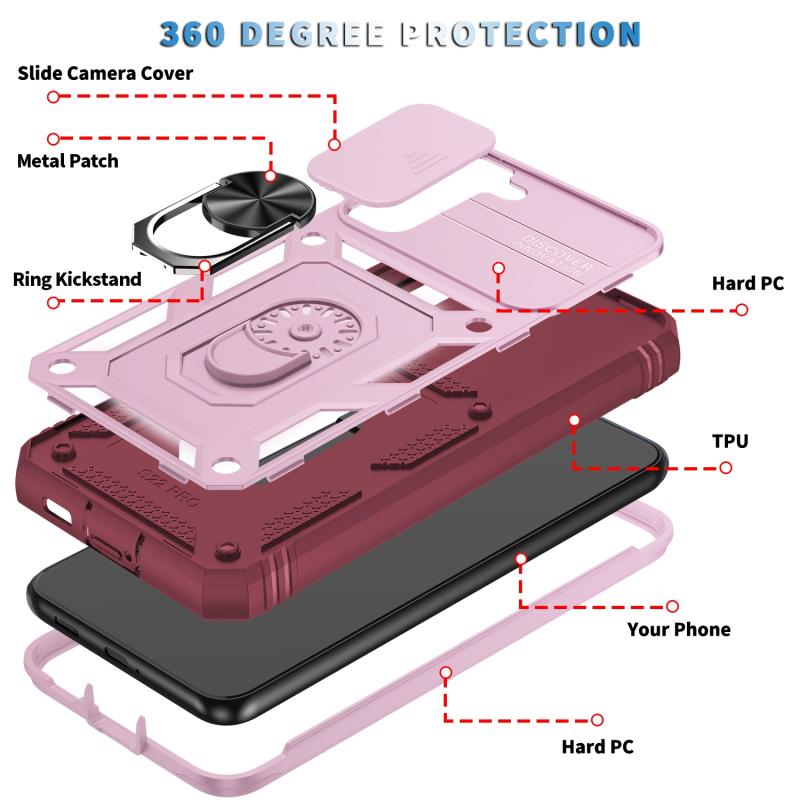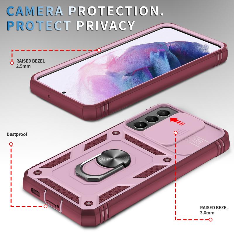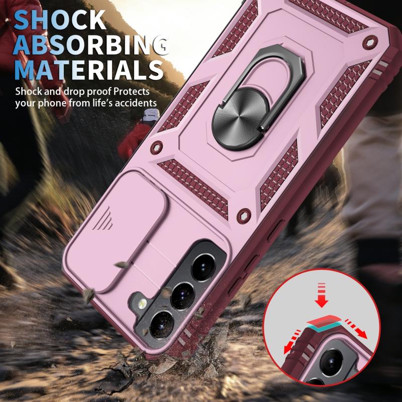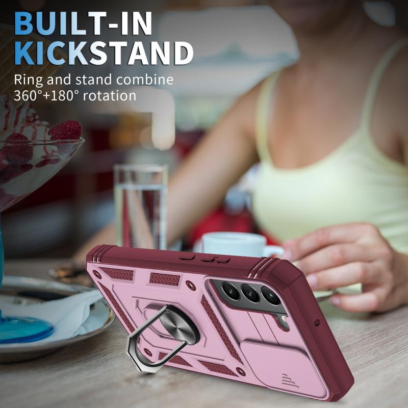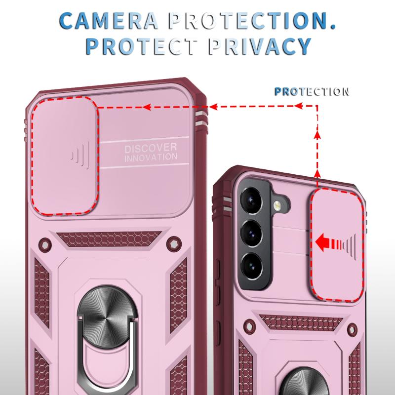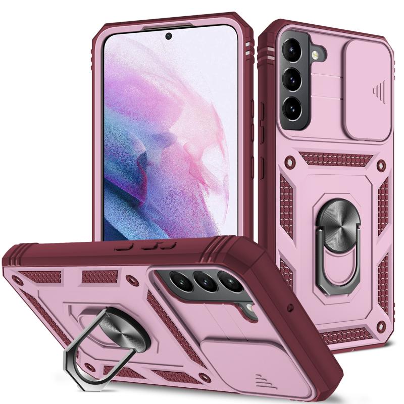 For Samsung Galaxy S22+ 5G Sliding Camera Cover TPU + PC Phone Case(Pink+Red)