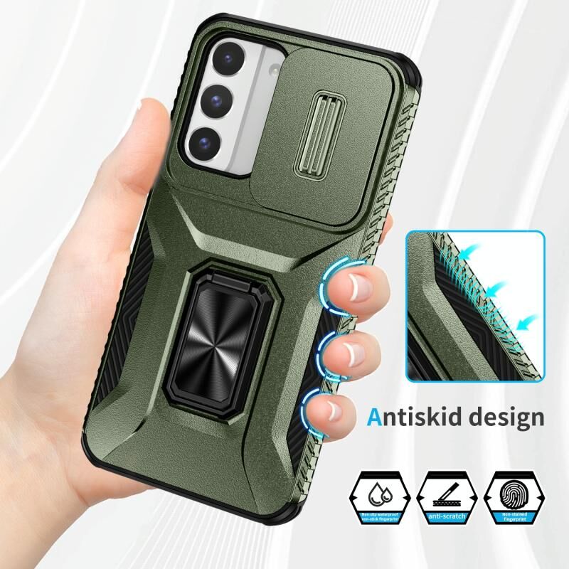 Για Samsung Galaxy S22 5G Συρόμενη θήκη τηλεφώνου με προστατευτικό κάλυμμα κάμερας (αλπικό πράσινο)